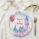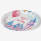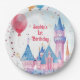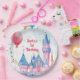 Cute Pink Watercolor Princesa Castillo Fiesta Plate - ideal para fiestas especiales de cumpleaños. Personalizar el mensaje para cualquier año de cumpleaños.