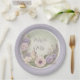 Este diseño de castillo de cuento de hadas morado de bonito presenta flores rosa y violeta que enmarcan el texto de su personalizado.