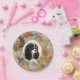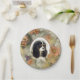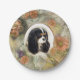 Un Cavalier King Charles Spaniel, Tri, aparece con orgullo en este plato oval rodeado de flores de encaje y naranja.