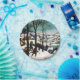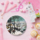 Placas de papel con la pintura al óleo sobre madera de Pieter Bruegel The Hunters in the Snow (1565). Un pueblo cubierto de nieve recibe a un grupo de cazadores y perros. Los aldeanos patinan en los helados lagos. ¡Un feliz regalo de Navidad!