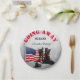Rústica celebración personalizado plato fiesta. Perfecto para un soldado que se va, viene a casa o un fiesta de retiro. Presenta un ambiente rústico con una bandera patriótica estadounidense, un par de botas del ejército con nombre y fecha.
