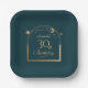 Las placas de papel de 30º cumpleaños para la astronomía de la luna del oro verde celestial presentan un elegante sol dorado, luna y estrellas con un marco dorado sobre un fondo verde. Dentro está tu información de 30 años de personalizado. Personalice editando el texto en los cuadros de texto. Diseñado por Evco Studio www.zazzle.com/store/evcostudio