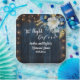 Un diseño de boda elegante con caligrafía elegante completado con maravillosa madera azul, luces de jardín y flores blancas y azules con brillo dorado. Puedes personalizarlo con tus detalles.