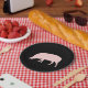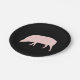 Este plato impresionante tiene un cerdo rosado al estilo personalizado. Tiene la cabeza preparada para engullir cualquier comida que pueda encontrar.