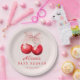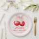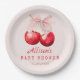 Plato De Papel Cerezo en la cima del Chica Baby Shower rojo y ros