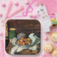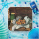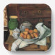 Pintura de Paul Cezanne: Velas, Fruta y Ropa frente a Chest, baldosa cuadrada.