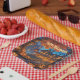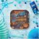 Este plato de papel presenta una mansión espeluznante en el bosque con ventanas iluminadas rodeadas de muchas calabazas. ¡Perfecto para tu fiesta de Halloween! Texto personalizado.