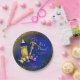 Platos de papel para baby shower del príncipe con hermosas cosas del príncipe en azul real y dorado sobre un fondo precioso azul real y dorado. Puedes personalizar estos platos de papel para baby shower del príncipe simplemente añadiendo tu texto.