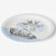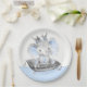 Platos de papel para baby shower de elefante niño con un adorable príncipe elefante bebé en un fondo de lunares azul bebé y gris. Puedes agregar texto para personalizar estos dulces platos de papel para baby shower de elefante niño. También puedes agregar un color de fondo a estos platos de papel de elefante príncipe.