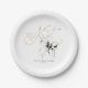 Agregue un toque encantador y único a su fiesta de despedida de soltera “She's Tying the Knot” con estos elegantes platos de papel de lazo negro y dorado.