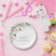 Plato De Papel Champán Floral Acuarela Rosa Elegante para Despedi
