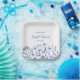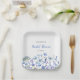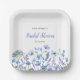 Platos de papel para champán nupcial de acuarela floral azul silvestre. Fácil de cambiar el texto. Acuarela floral bonita.