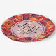 Patrón floral de flores rojas, naranjas y oscuras púrpuras y hojas verdes, estos platos de papel son ideales para tu champán nupcial, regalo de inauguración de casa o para la decoración de tu hogar. Artículos COINCIDENTES en nuestra tienda.