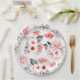 Plato De Papel Champán Nupcial de Flores Aquareladas Rojas y Gris