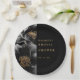 Estas elegantes platos de papel para desayuno de novia florales de negro y dorado pueden ser personalizados con su información en tipografía moderna. Diseñados por Thisisnotme©