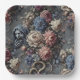 A hooded grotesque parts the florals like a curtain, peering through blooms of plum, ivory, and slate. Serpentine roots coil beneath, as if conjuring secrets from behind the veil.