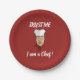 Cabeza del chef con gorra, pañuelo rojo y texto personalizado.