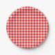 Plato De Papel Cheques de Gingham de tamaño medio rojo y blanco