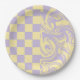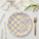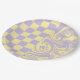 Plato De Papel Cheques y Swirls - Amarillo Pastel y Púrpura