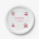 Serve your birthday treats in style with these adorable cherry-themed paper plates! Featuring a playful pattern of cherry balloon dogs and sweet cherry accents on a soft pink aesthetic. Perfect for a "cherry sweet" birthday celebration, these plates can be easily personalized with your child's name for a special touch at the party table.