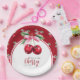 Celebra el "cerezo en la cima" que nacerá pronto con estas insólitas y inspiradoras Placas de papel con colores rojo cereza, verde y lazo rosado para tu Chica Baby Shower