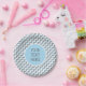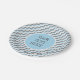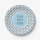 Plato De Papel Chevron azul bebé y Personalizado gris texto