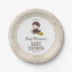 Celebrate your little wizard on the way with this enchanting Harry Potter baby shower plate featuring Harry himself. This charming design includes an adorable illustration of Harry Potter in his Hogwarts robes, riding his broom and ready for magical adventures. The background is sprinkled with colorful stars for a touch of whimsy. Elegant and playful fonts beautifully display your custom details, including the honoree’s name and event date. The unique paper texture of the plate creates a storybook feel, while the back showcases a fun pattern of wizarding world icons such as spell books, potions, cauldrons, and magical creatures. Perfect for any Harry Potter fan, this plate brings a spellbinding touch to your baby shower.