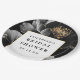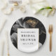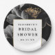 Estas elegantes platos de papel para despedida de soltera con flores negras y doradas pueden ser personalizados con su información en tipografía moderna. Diseñados por Thisisnotme©