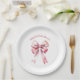 Adorables y dulces platos de baby shower de niña con lazo rosa. Personalízalos con tu texto.