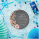 Platos de papel de Baby Shower de niña de flor silvestre rosa boho rústico. Elegante corona floral de acuarela enmarca los detalles de su evento. Paletas pastel de rosa suave, blanco apagado y gris oscuro.