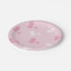 Estos adorables platos de papel con un patrón de cigüeña rosa y blanca harían una maravillosa adición a los suministros de ducha para bebés.