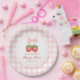 Chica de fresa de arándano rosado de vaca 1ª Placas de papel de cumpleaños