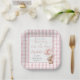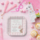 Estos encantadores placas de papel para bebés cuentan con un lindo conejo de bebés con globos y un fondo de gingham rosa, y pueden ser personalizados con su nombre y fecha especial. Diseñado por Thisisnotme©