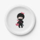 El chica lindo del ninja del dibujo animado se vistió en negro pero para un arco rosado encima de su máscara principal. La espada japonesa tradicional del katana se puede ver ató con correa a ella detrás, él es rosa también coloreado de la manija. El chica está sosteniendo una cesta de compras rosada.