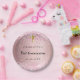 Fondo de degradado rosa polvoriento. Decorado con confeti y una falsa cruz de oro. Personalice y agregue un nombre y una fecha.