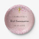 Plato De Papel Chica de nombre de confeti rosa de la primera comu