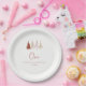 Invierno de los Árboles de Navidad Chica de la Tierra de Oro Primer Día Placas de papel de cumpleaños El tema de los árboles de navidad rosados es perfecto para una fiesta de cumpleaños mínima y moderna! Elija nuestro diseño de arcoiris color pastel para su fiesta de primer cumpleaños.