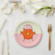 Patata de Pascua con cáscara de huevo en placas de papel. Estos adorables platos de Pascua tienen una linda chica naranja con una concha de huevo encaramada sobre su cabeza. El fondo es alegre, amarillo y rosa. Perfecto para las celebraciones de Pascua, estos platos le darán un toque festivo a su reunión.