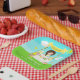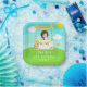Este plato tierno y caprichoso tiene un chica de pelo castaño con piel clara en un puesto de limonada amarilla decorado con flores y lienzo. En el fondo hay un cielo azul, sol y mariposas. El texto combina fuentes decorativas y sans serif para un estilo elegante y moderno. Esto es perfecto para una fiesta de cumpleaños de verano. Gráficos de MUJKA