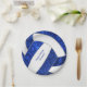 Los platos de papel de los chicas para la fiesta de cumpleaños 7" presentan un gráfico de voleibol azul y blanco con el saludo de personalizable "Cumpleaños feliz" y el nombre del chica - los paneles azules del voleibol se mezclan con un patrón kaleidoscópico floral de bonito, y los paneles de voleibol blanco se combinan con un patrón de rotación abstracto para una apariencia texturada que es artística y femenina - de katz._zynes