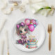 Una Placa Feliz De Papel De Cumpleaños Con Una Chica Personalizado Con Sus Globos Fiestas Y Pastel De Cumpleaños