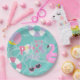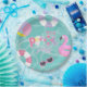 Fiesta de piscina para chica con flotas rosadas y violetas