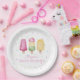 Listo para Pop Chica de verano Baby Shower placas de papel con popsiques geniales sobre ellos.