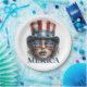 Celebremos el 4 de julio con estilo audaz con este glamoroso diseño patriótico. Con una mujer estilizada que usa gafas de sol rojas, blancas y azules, un sombrero top de bandera y texto de "Merica", es la impresión perfecta para las vibraciones del Día de la Independencia y el orgullo estadounidense.