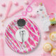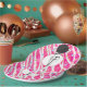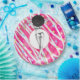 El donut rosa con espolvorines presenta chica en bikini y gorra. Se coordina con una fiesta de soltera de chicas retro y con invitaciones para fiestas de 40 años en piscina para adultos, pero es perfecto para cualquier evento temático de piscina o playa.