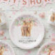 Plato De Papel Chica rosa Floral Highland Cow Calf Baby Shower