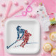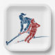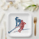 Chicas rojos y azules en la plaza de plaquitas de papel de hockey o redondo