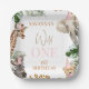 Chicas de impresión Cheetah Safari Wild One 1st Birthday Paper Plates Sweet chica safari con la temática de la placa de primer cumpleaños con algunos animales fiestas de safari, gorra fiesta, follaje tropical y un moderno encabezado de imagen caligráfica. El plato de papel de primer cumpleaños con temática safari es ideal para una fiesta de primer cumpleaños con temática de safari para chicas.