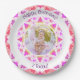 Chicas Felices Cumpleaños Vibrante Estrella Rosa Personalizado De Edad Plate De Papel. Un patrón de estrellas geométricas de bonito para la celebración de cumpleaños de chicas, mujeres y damas o aniversario de bodas. Personalízalo cambiando la foto y el texto de abajo. Tu propia foto cuadrada o circular funcionará mejor. Decoración fiesta de dopamina para todas las edades, desde un recién nacido a una quinceañera a un dulce de 16 a los coquetos treinta y más. ¡Celebren los buenos tiempos!