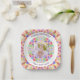 Chicas Felices Cumpleaños Vibrante Estrella Verde Rosa Morada Personalizado Age Square Paper Plate. Un patrón de estrellas geométricas de bonito para la celebración de cumpleaños de chicas, mujeres y damas o aniversario de bodas. Personalízalo cambiando la foto y el texto en la parte inferior. Tu propia foto cuadrada o circular funcionará mejor. Decoración fiesta de dopamina para todas las edades, desde un recién nacido a una quinceañera a un dulce de 16 a los coquetos treinta y más. ¡Celebren los buenos tiempos!
